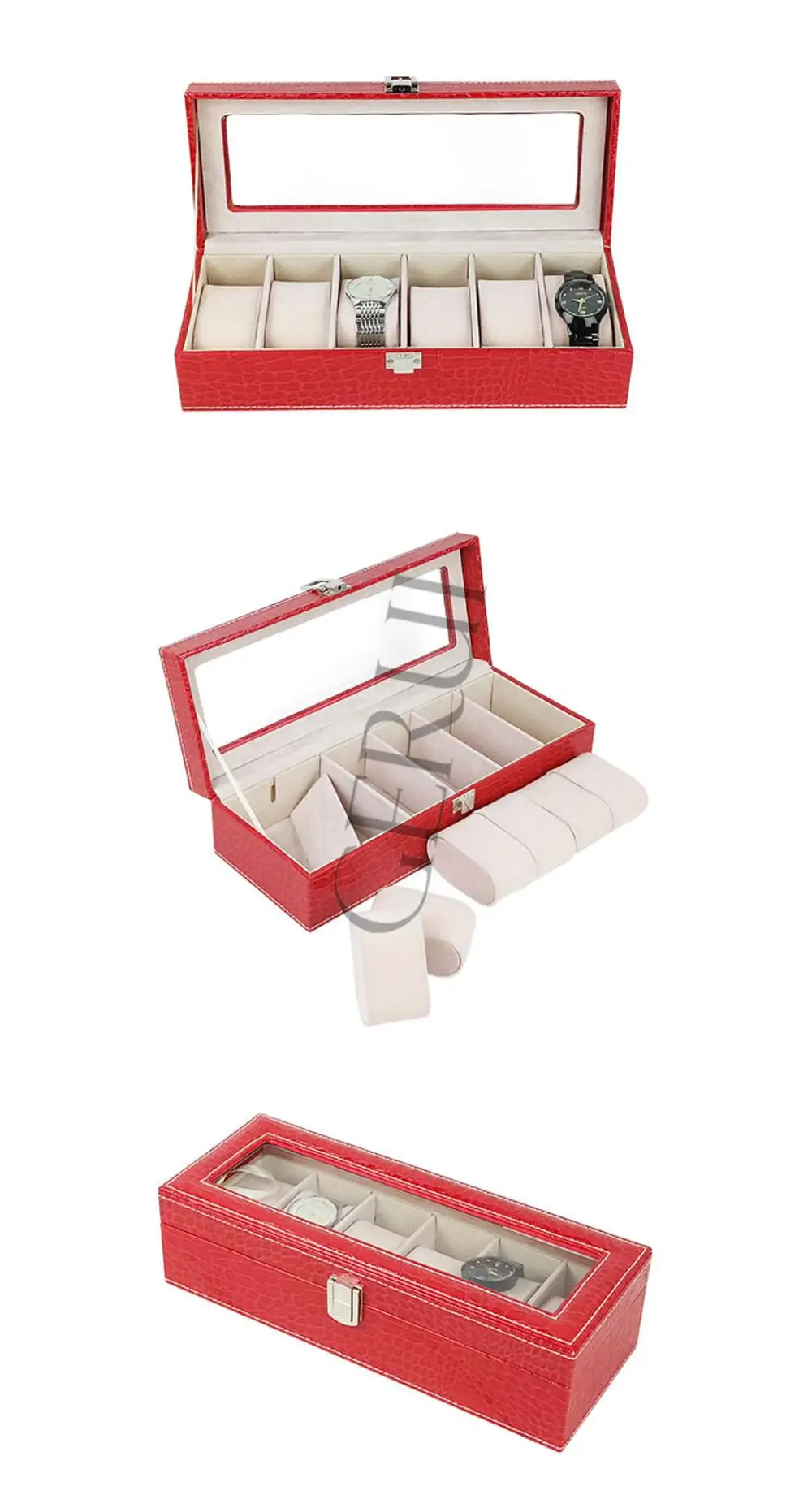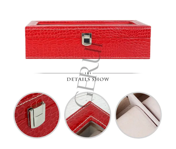Luxury Flip Top Mens Wooden Watch Storage Box Rectangular Packaging 6 Slot Watch Display Case