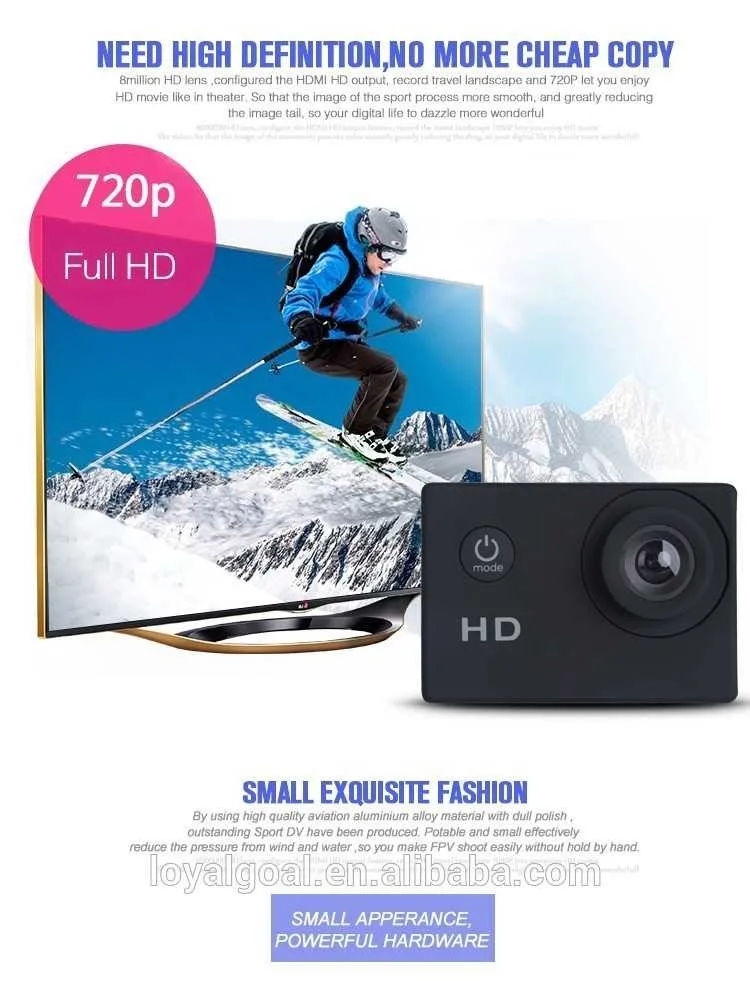 Factory Promotion HD 720P 2.0 Inch Zoom Action Camera, Waterproof Sport Camera For Outdoor Sports