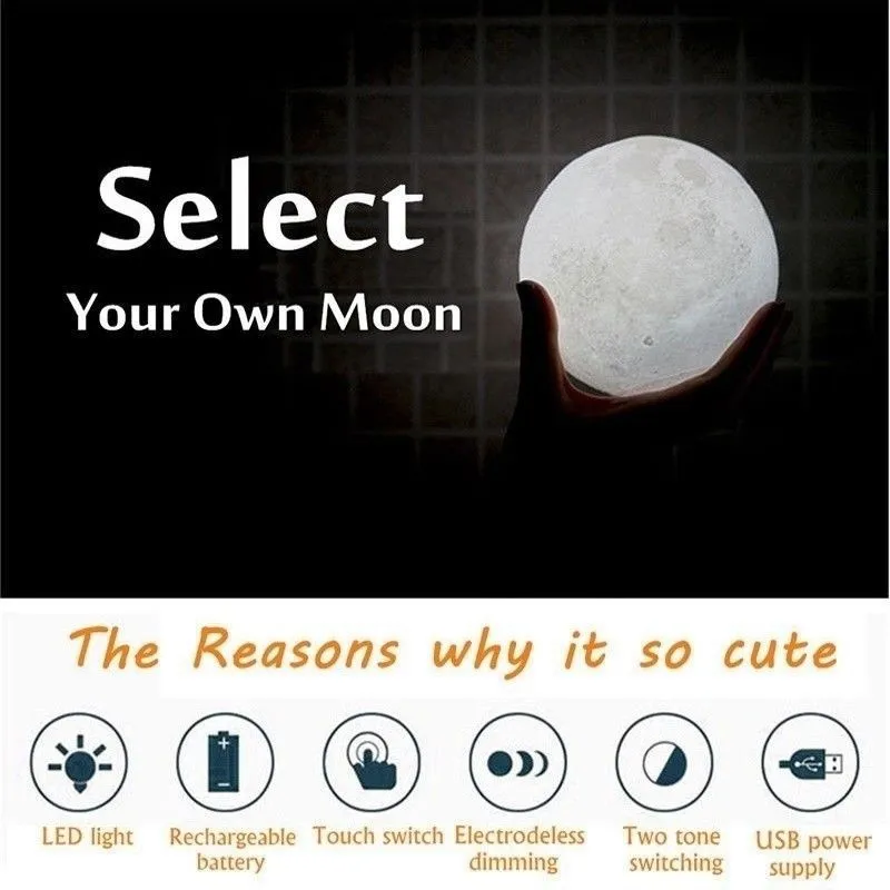 The nightstand lamps is delicately crafted with 3D printing technology, restores the real appearance of the moon vividly. The moon has been a divine and enchanting symbol, it brings you lucky and happiness. unique moon shape makes the room full of fun, cute gifts for childrens or baby.