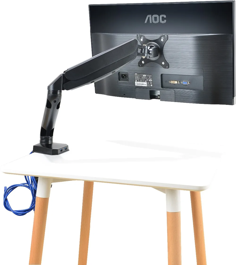 Monitor Desktop Mount is a single monitor gas spring mount from JLT. The counterbalance gas spring arm allows for simple height adjustment without the use of tools and is fully adjustable allowing you to set the monitor to almost any viewing angle. Also featured is an integrated cable management system. It is compatible with VESA 75mm x 75mm and 100mm x 100mm and fits screens up to 27" in size . Monitor can be smoothly rotated between landscape or portrait position.