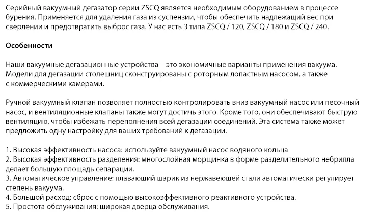 Today, ZSCQ serial jet flow vacuum degasser is a necessary equipment in the drilling process. It is mainly used to remove gas from slurry to ensure appropriate weight when drilling down and prevent blowout. We have 3 types of ZSCQ/120,ZSCQ/180 and ZSCQ/240.