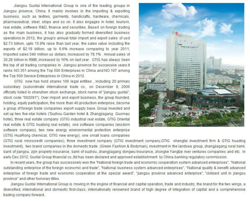Trust us,JIANGSU GUOTAI will never let you down!