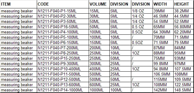 Related other volume measuring cup and funnel do supply, small order is welcome,come and contact with me for details. If cannot find the item, drawing or samples provided can make the molds, my team has 20 years mold making experience.