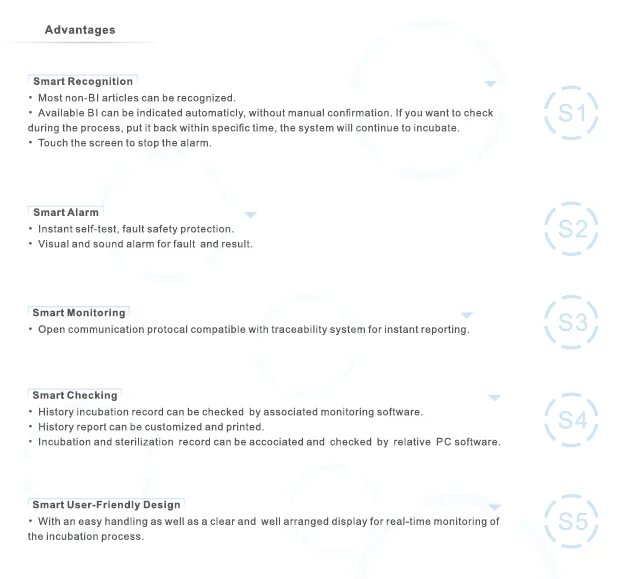 1. CSSD: Rapid readout for sterilization processes including EO, plasma, and steam;