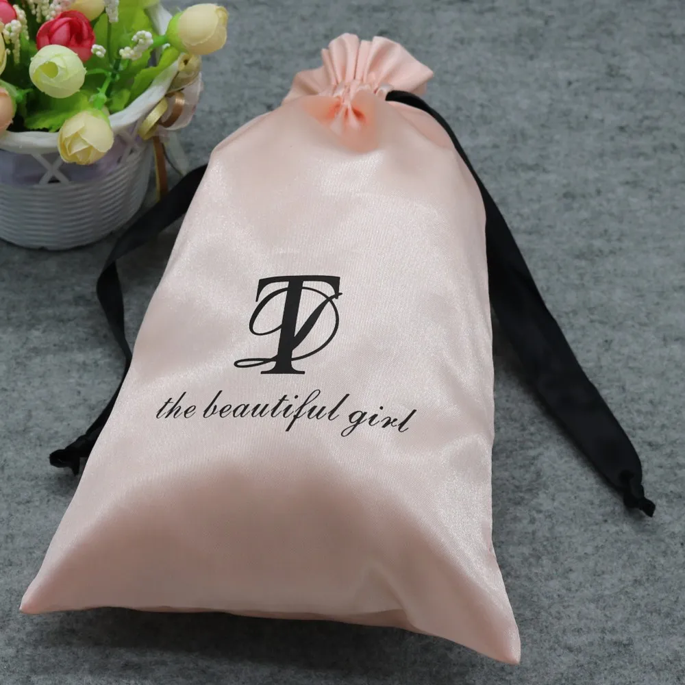 *Product name | Wholesale Printed Black Wig Hair Drawstring Packaging Silk Satin Bags With Pink Tassel For Bundles | |