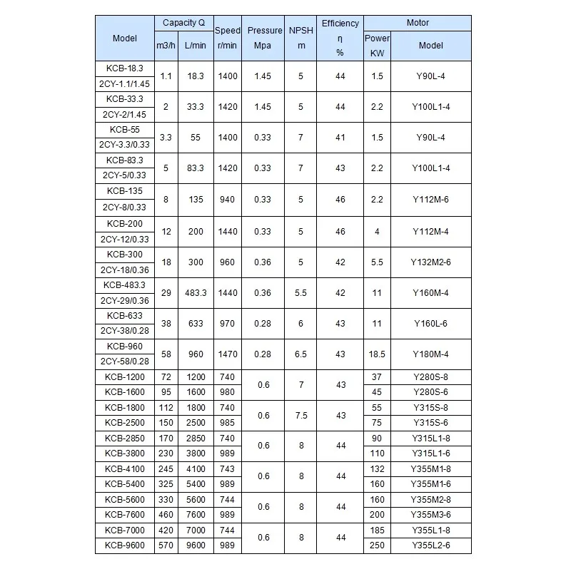 KCB135-KCB960 cast iron material gear pump: