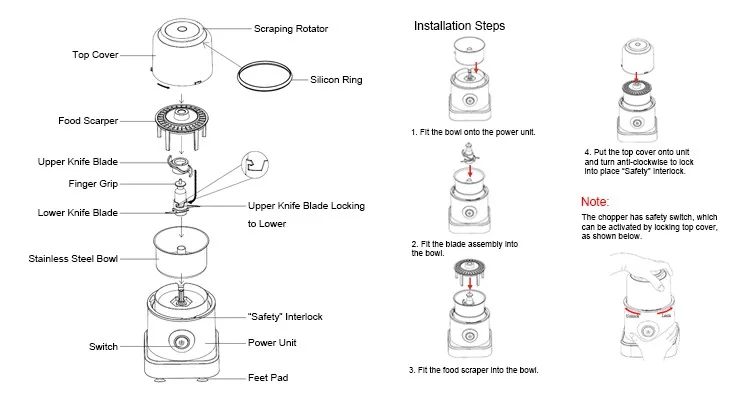 Follow below six steps to use your Personal food chopper.