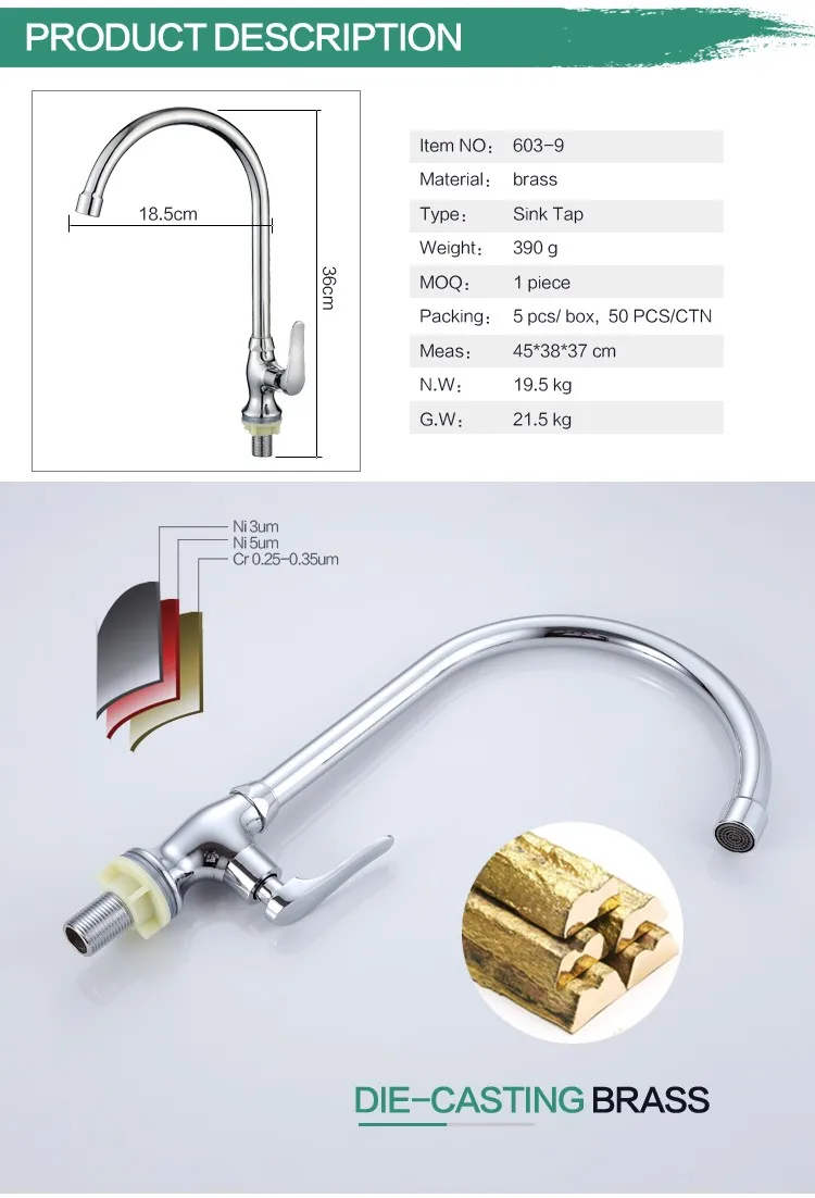 Rapsel High Quality Copper Chrome Single Cold Kitchen Tap