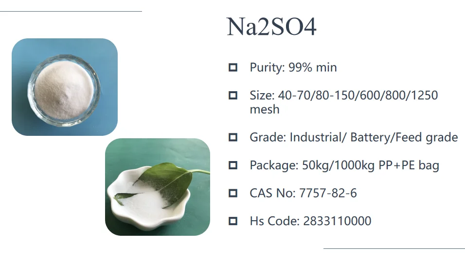 Sodium sulfate/sodium sulphate anhydrous,inorganic compounds, high-purity, fine-grained anhydrates are called Yuanming powder. Yuanming powder, white, odorless, bitter crystalline or powder, hygroscopic. The shape is colorless, transparent, large crystal or small crystal of granularity. Mainly used in water glass, glass, enamel, pulp, refrigerant mixture, detergent, desiccant, dye thinner, analytical chemicals, pharmaceuticals, etc.