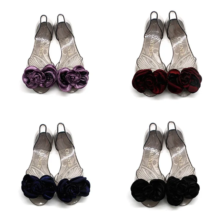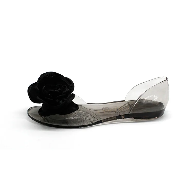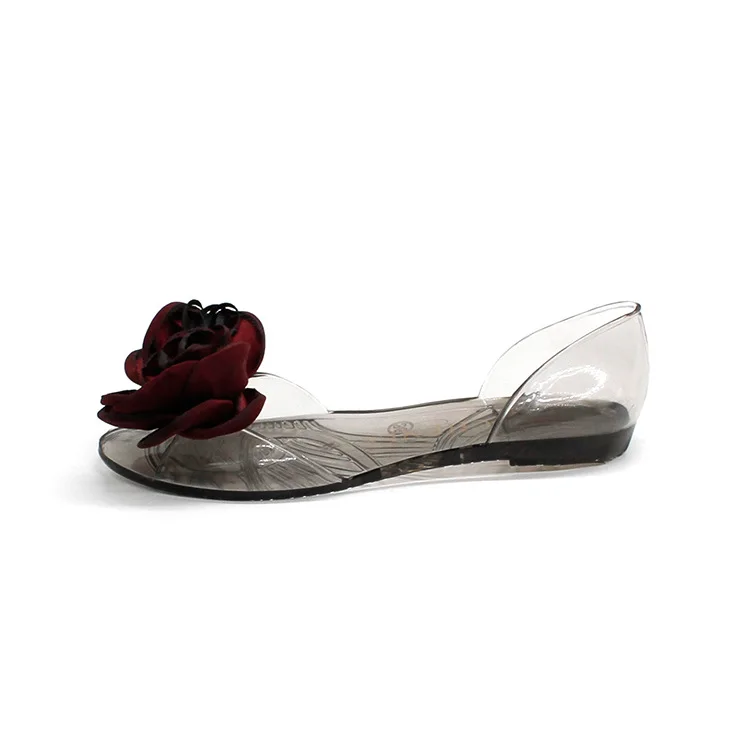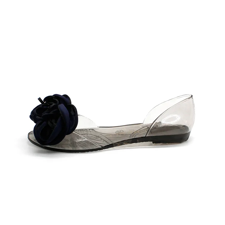 Flat Walking Sole Women's PVC Jelly Sandals Shoes with Bow ribbon rosette