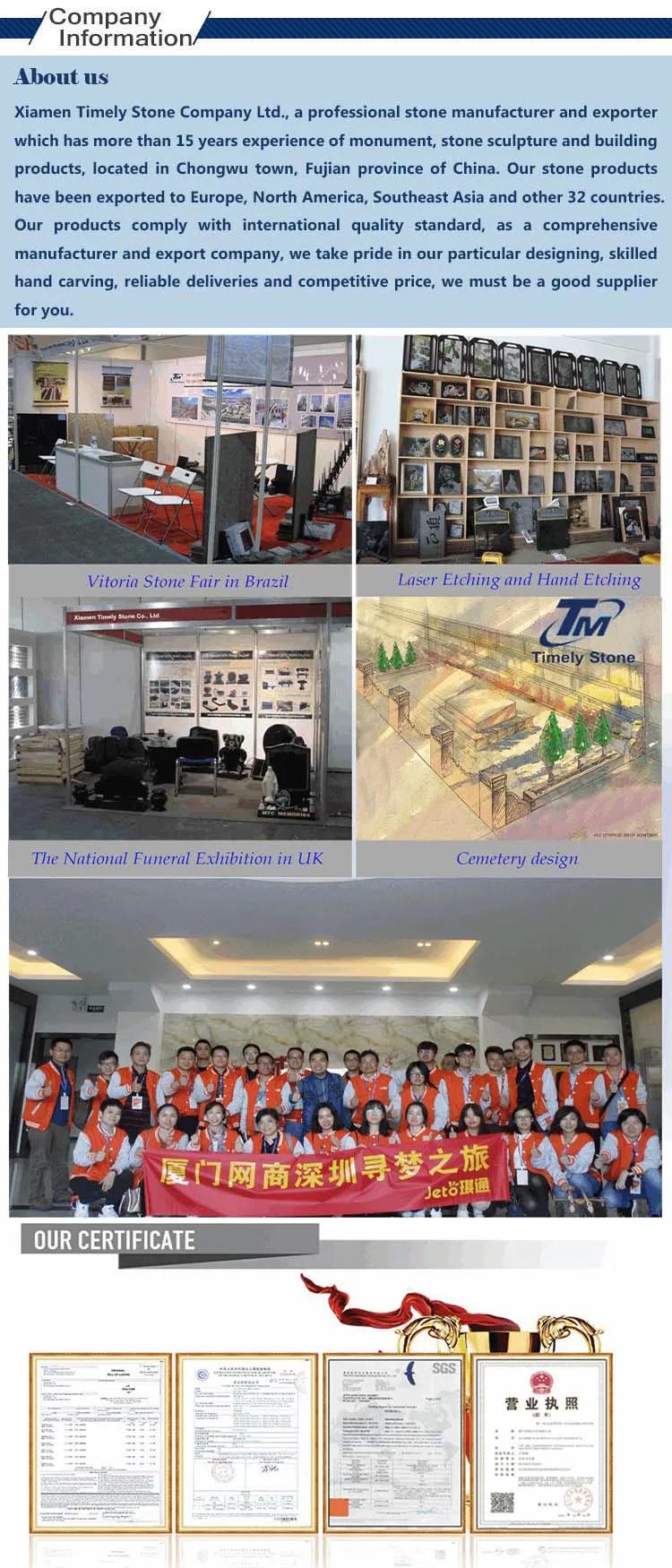 A. Tombstone & Monument & Building production experience for more than 15 years.