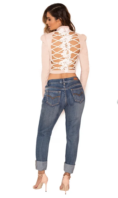 Long Sleeve Short Coat Sexy Hollow Out Backless Jacket
