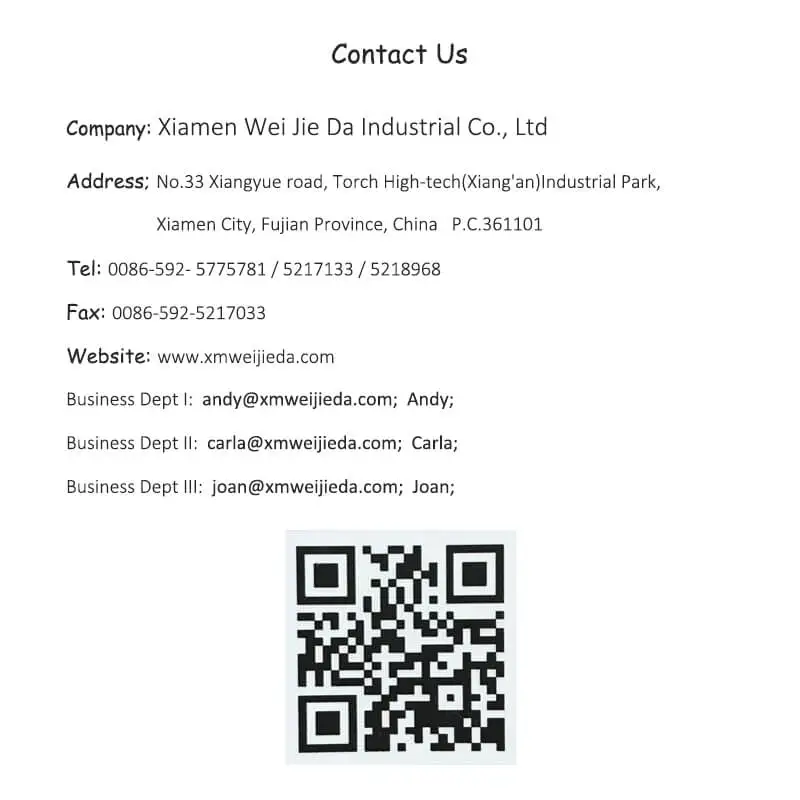 Business Dept I: andy @ xmweijieda.com; Andy;