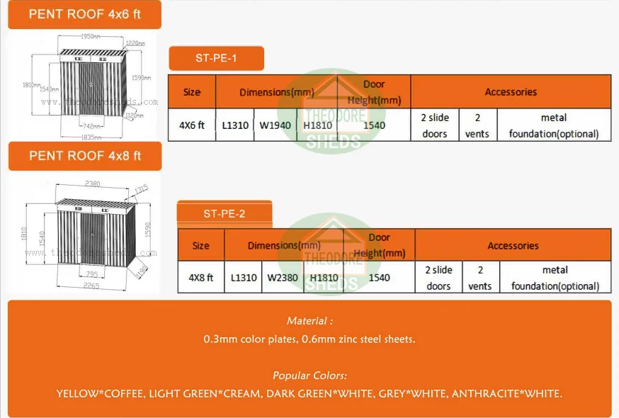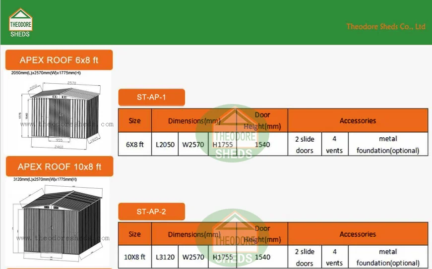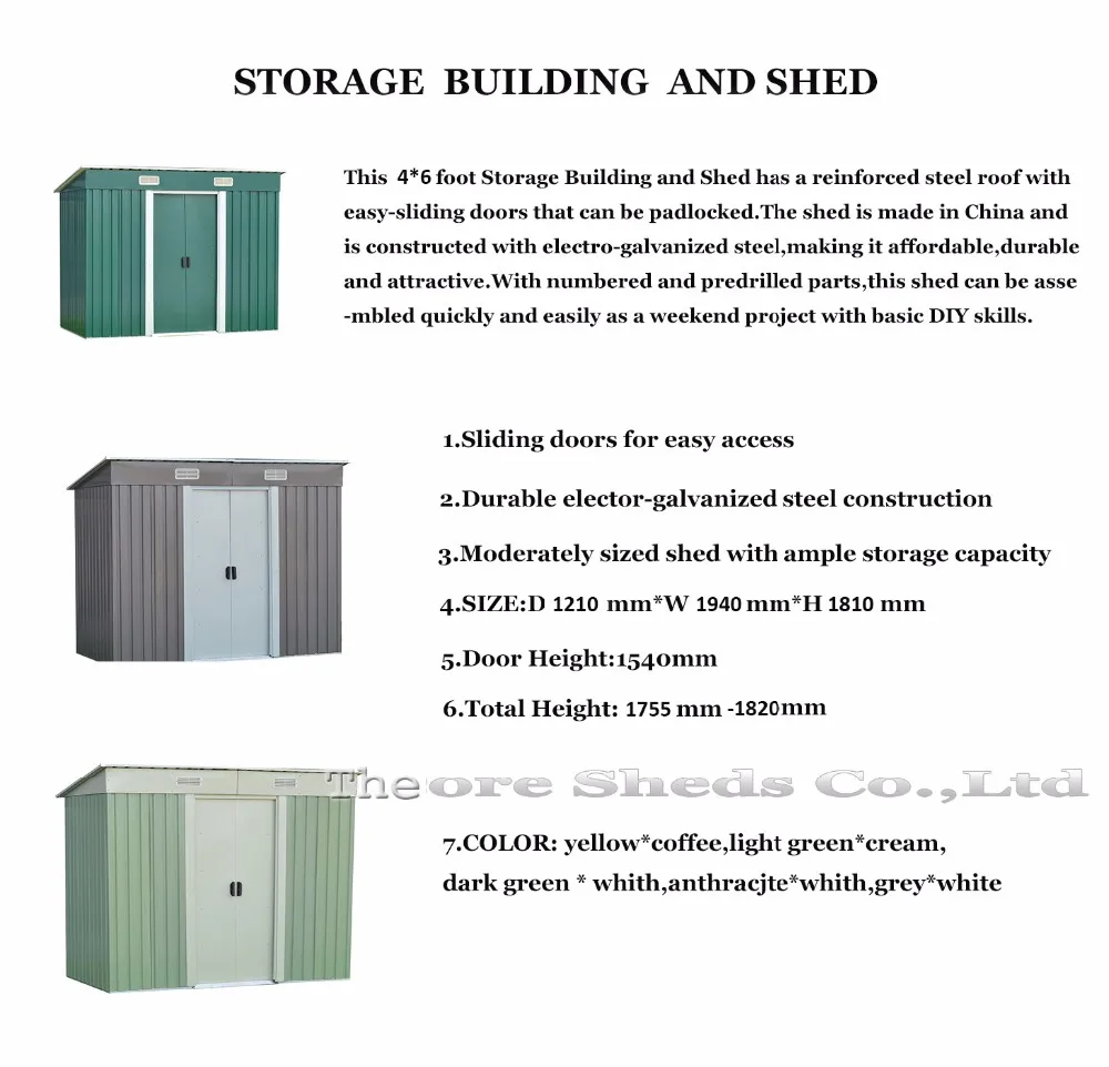 Metal shed provides a strong secure storage solution at a very favourable price. The sheds with best quality, we accept the DIY sizes and other different request on the products. The shed has 2 doors which have deep runners entry ramp for opening and closing.