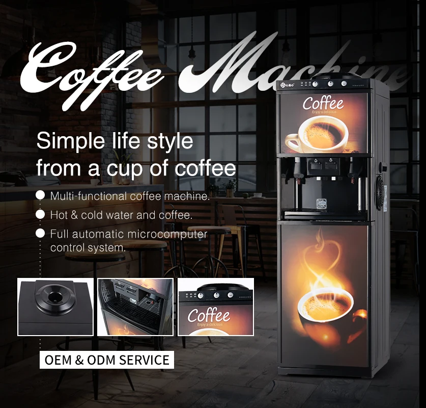 Product Description: 2 powder tank Hot&cold water and coffee Adjust coffee flavor and water flavor Full automatic microcomputer control system It can use bottle water and tap water Bottom loading design for you convenience Cooling by compressor Cooling by electric |
