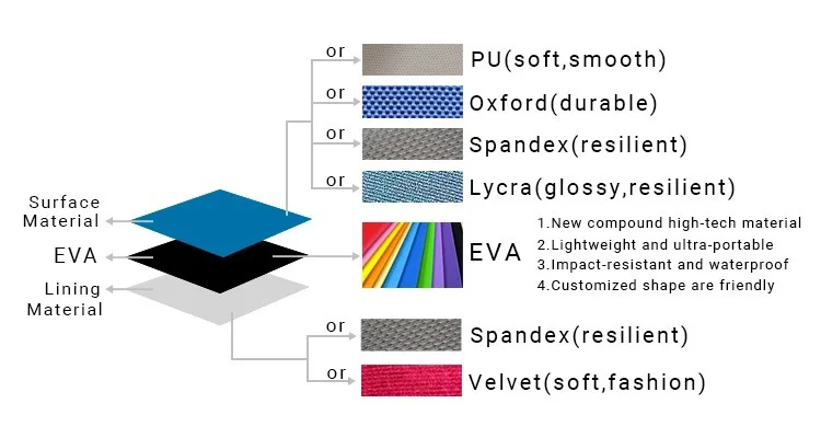*Material Type | EVA+PU leather/oxford/microfiber fabric | |