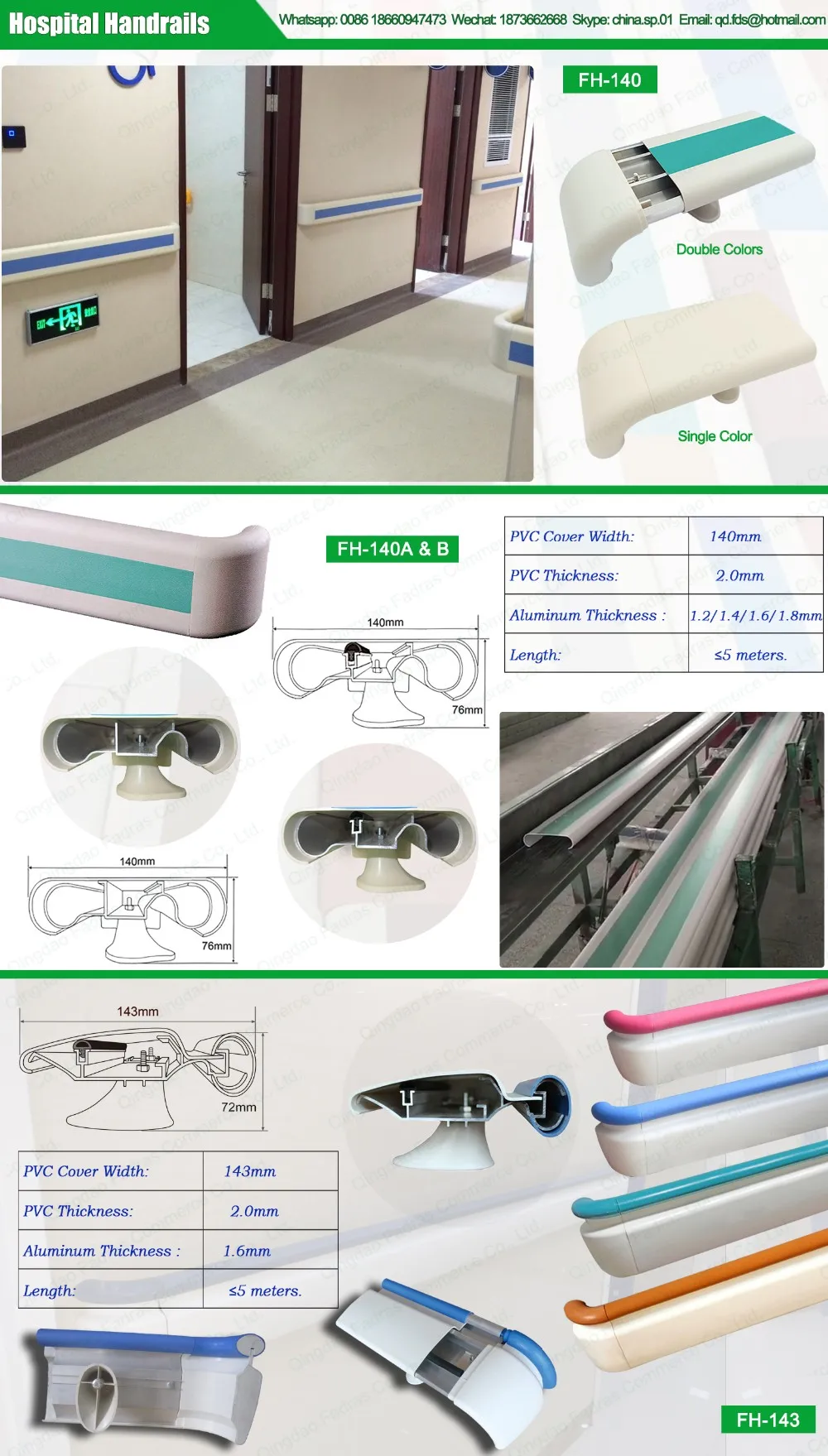 Configuration: | 1 meter Hospital wall mounted hand railing = 1 meter PVC Cover + 1 Meter Aluminum Support +1 pcs ABS End Cap + 2 pcs ABS Bracket + Bracket & End Cap Screws | ||||