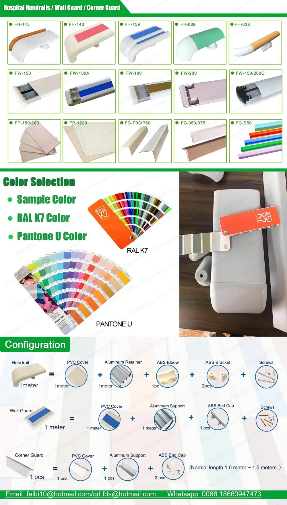 Configuration: | 1 meter Wall Guard= 1 meter PVC Cover + 1 Meter Aluminum Support +1 pcs ABS End Cap + 2 pcs ABS Bracket + Bracket & End Cap Screws |