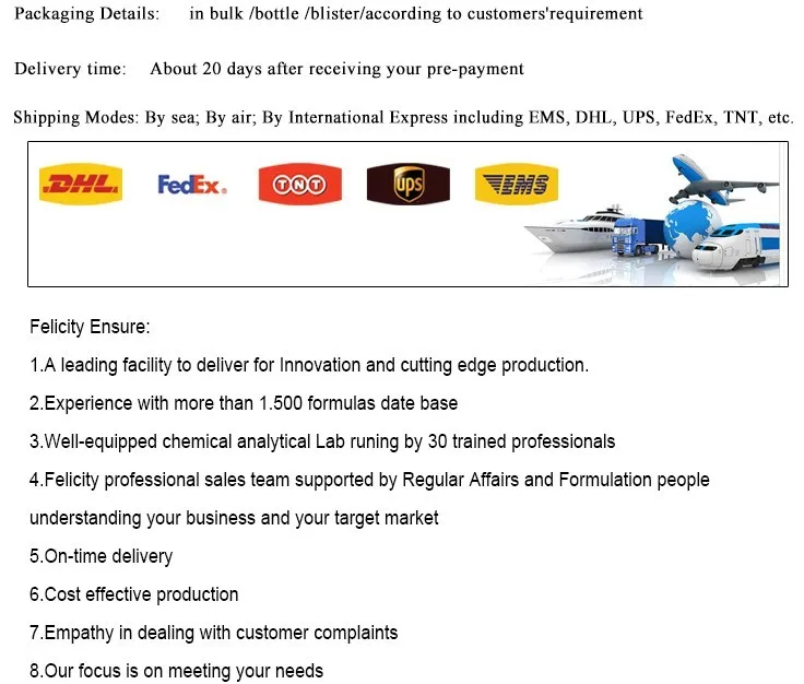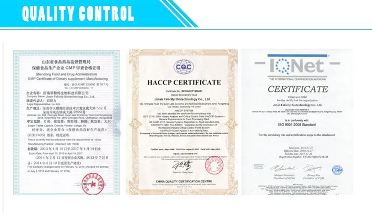 Felicity Biotech Limited covers an area of 50 hectares, we have more than 6000 employees. We have five soft capsule production line, the production line of three, two jelly production line, the powder production line and two oral liquid production line, has passed certification, GMP quality management certification, CGMP, HACCP, ISO9001, ISO14001, OHASAS18001 BRC global OEM, wholesale and retail.