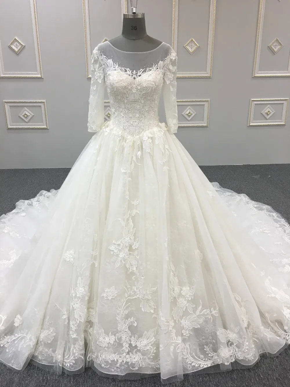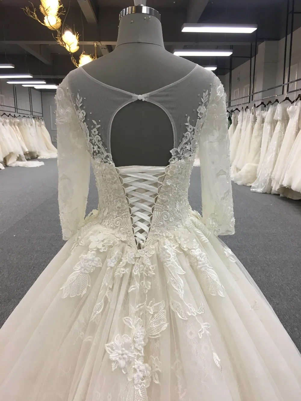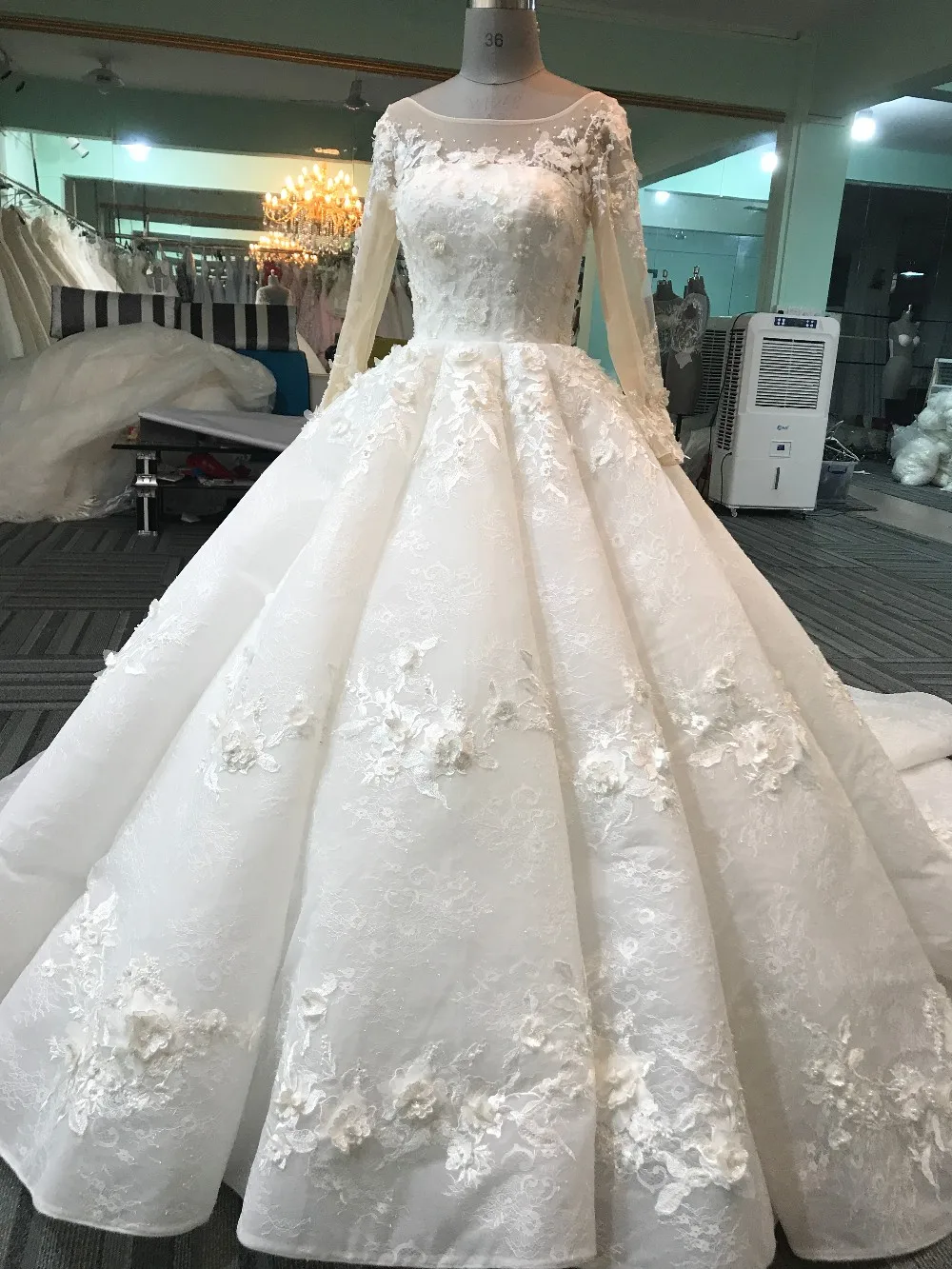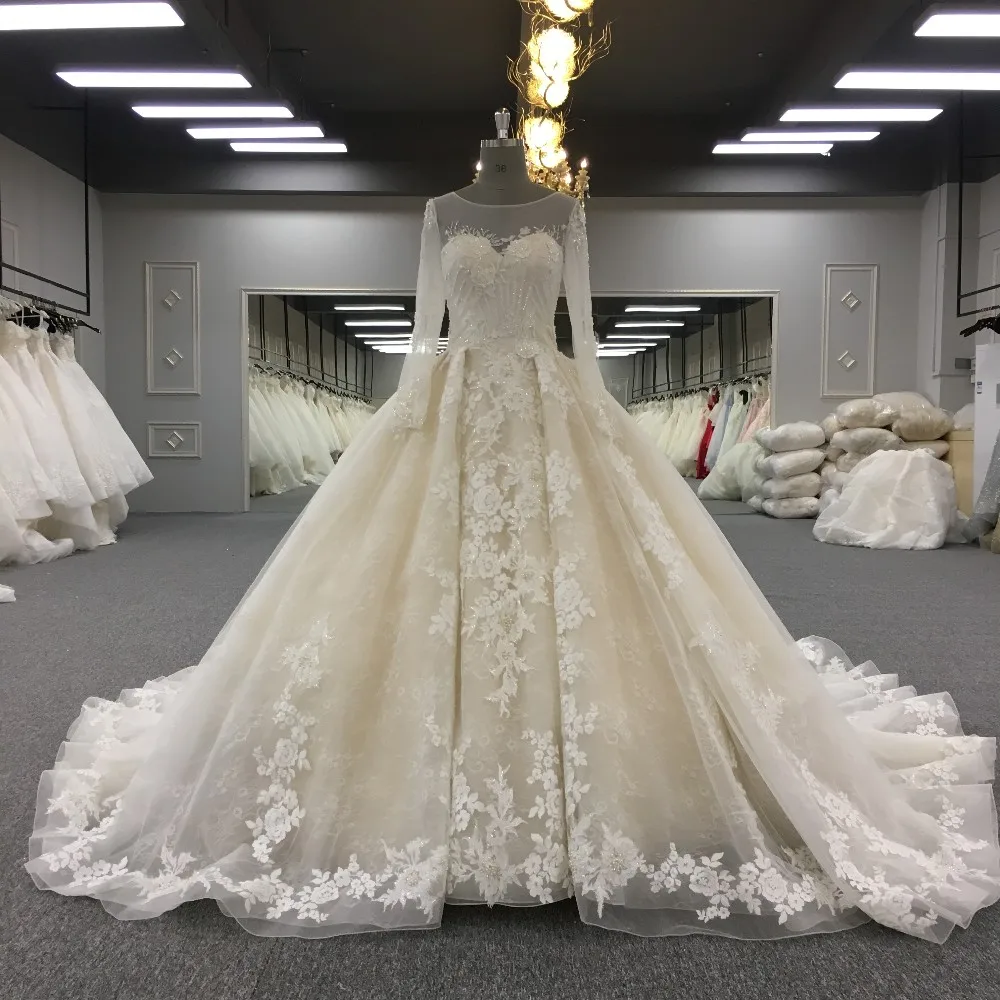 Zhongshan appliqued long sleeve ball gown wedding dress WT268