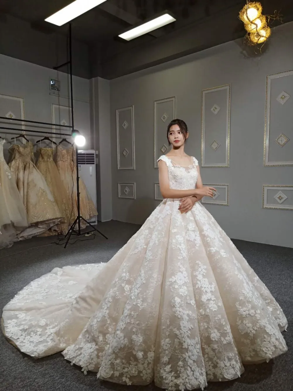 All our pictures are taken from real sample wedding dresses. There are might be different in color, because of the computer monitor settings. With the difference in the measurement method, please allowed 1~2 cm in size deviation.