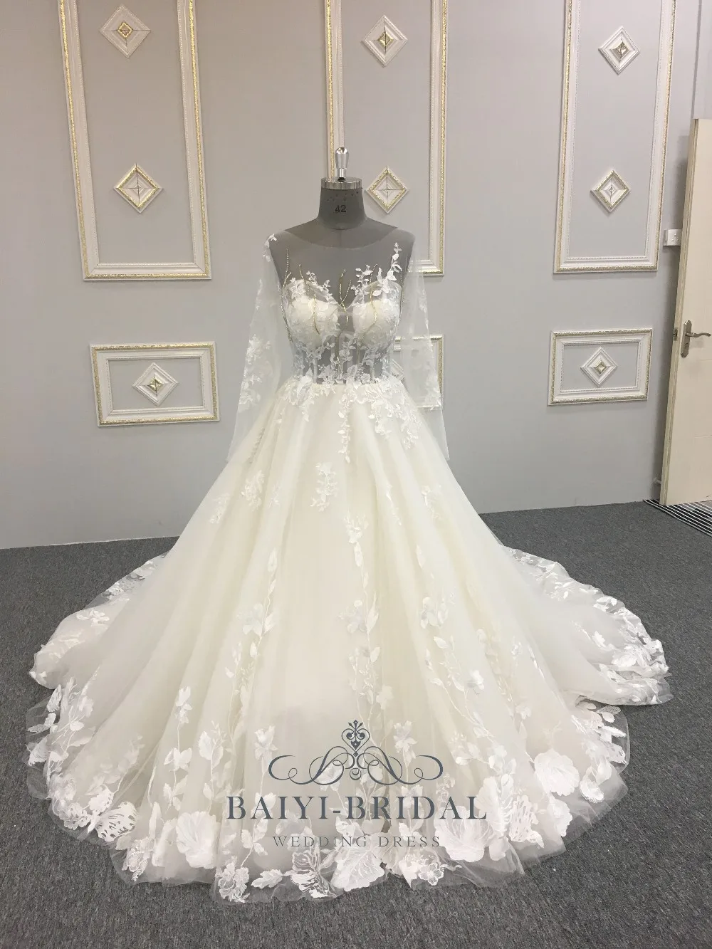 China Custom Made Alibaba Wedding Dress Mermaid Applique Long Sleeve Wedding Dresses 2018