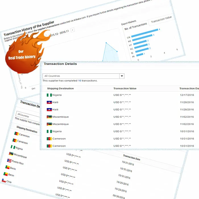 The below picture is our company real transaction history on alibaba recently six months.