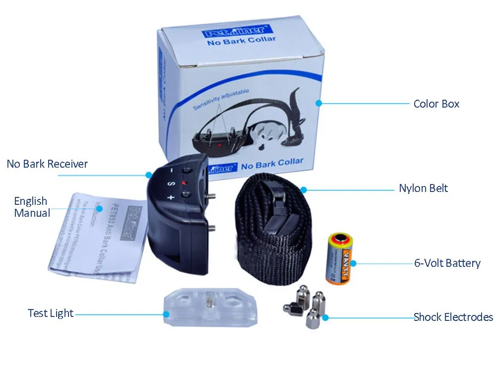 The Anti-Bark Collar PET853 stops barking with progressively increasing sound and shock which is controlled by a microprocessor distinguishing your dog’s bark from other environmental noises and automatically delivers sound and shock after each bark.