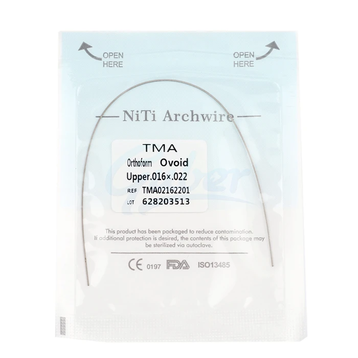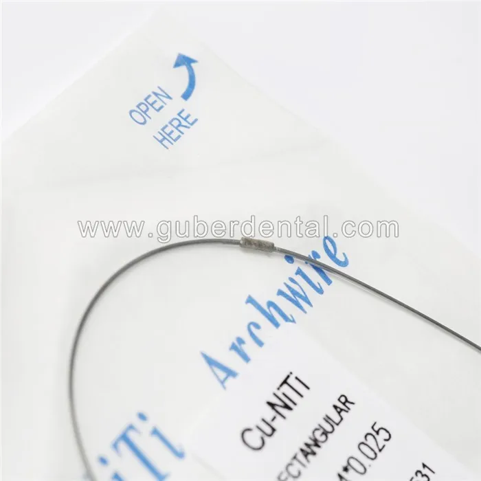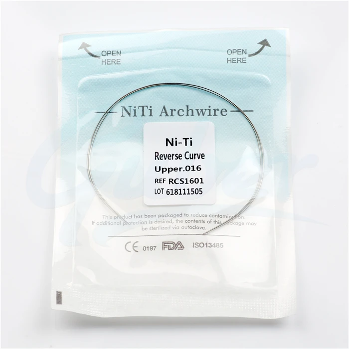 Reverse curve arch wire is 2 pcs per pack, it is made of high quality Ni-Ti, also have round and rectangle, a lot of different size to choose.