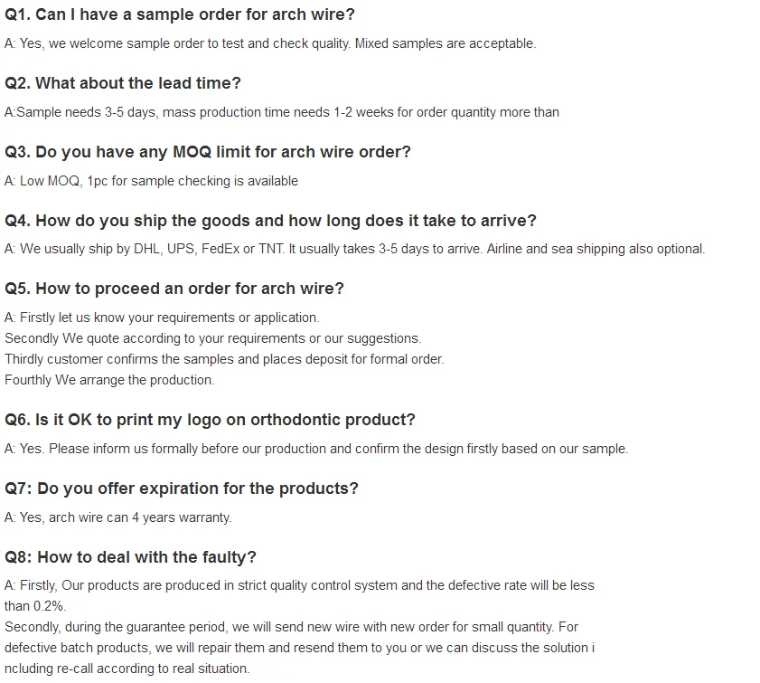 Full manufacturing and exporting experience in orthodontics bring us high quality products and better service.