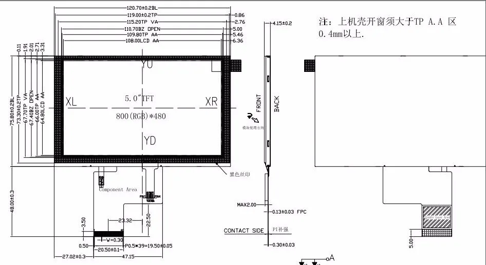 5 inch tft lcd module with capacitive touch panel 800*480