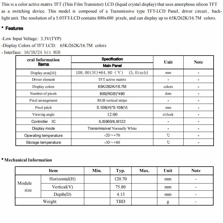 Product Type: | 5inch tft lcd |