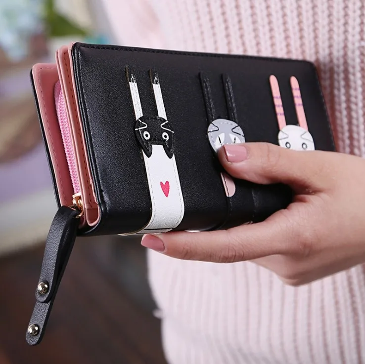 Hot Women Cute Cat Cartoon Wallet Long Creative Card Holder Casual Lady Wallet