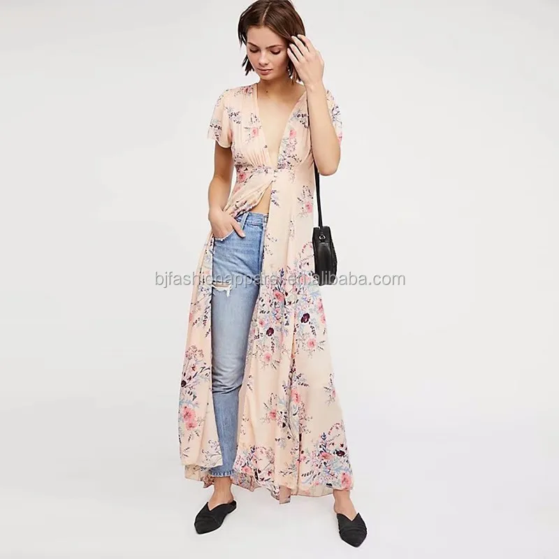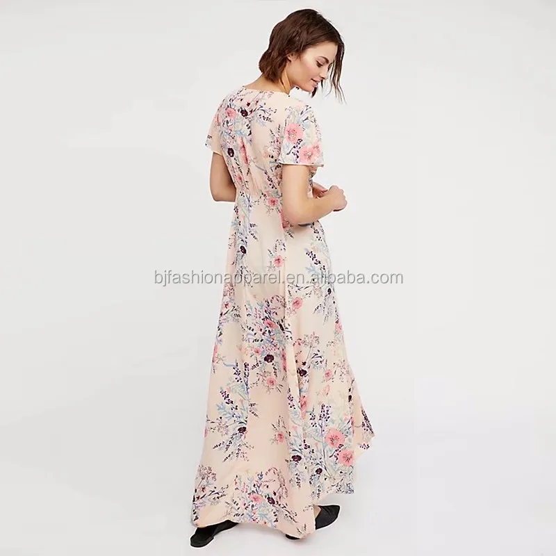 | Style | Ebay Amazon Euramerican Sexy Deep V Neck Short Sleeve Floral Printed Pink Maxi BOHO Long Dress |