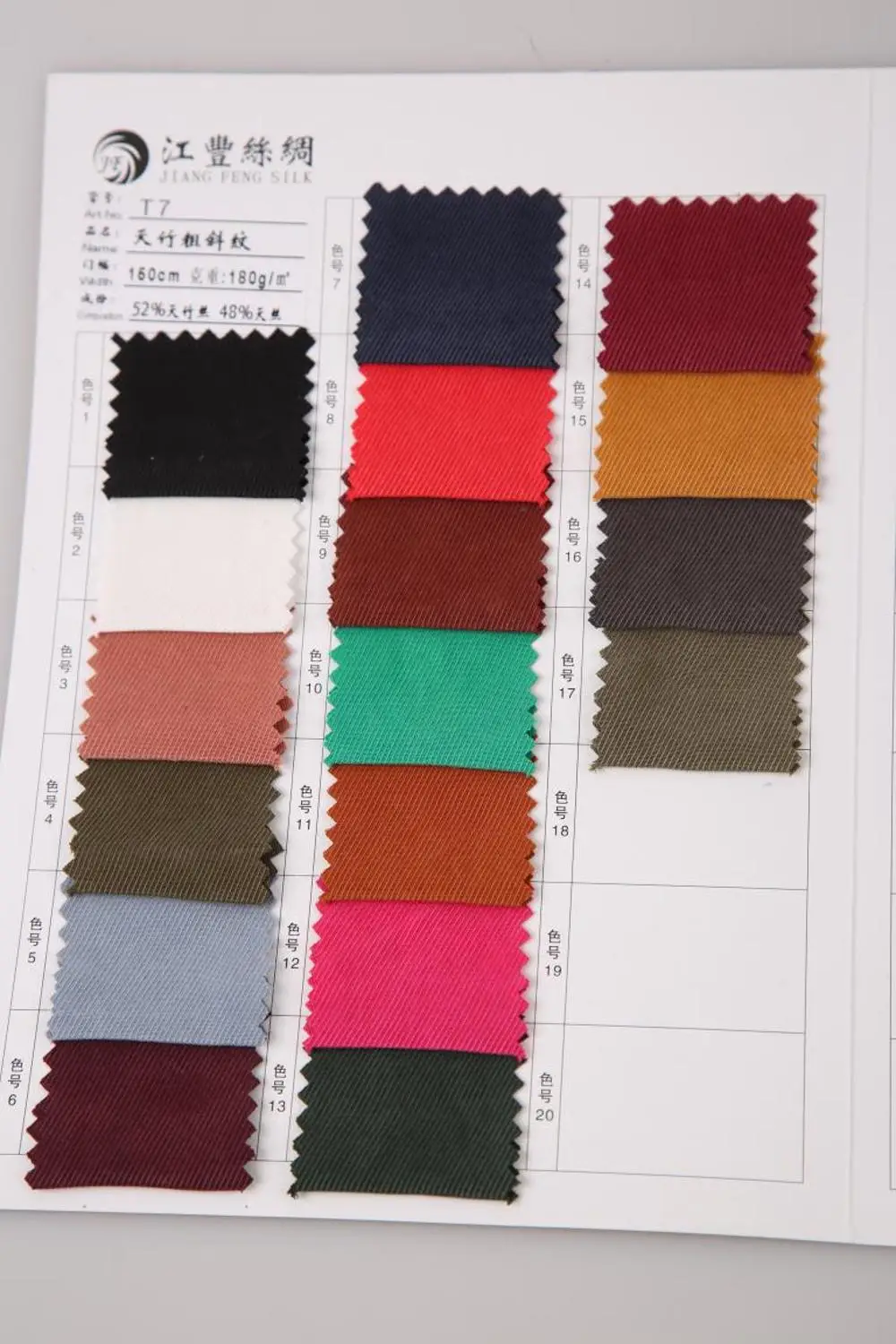 | Modle No.: | T7 Bamboo Coarse Twill | Fabric Type: | Lyocell / Bamboo / regenerated fiber / Modal | |