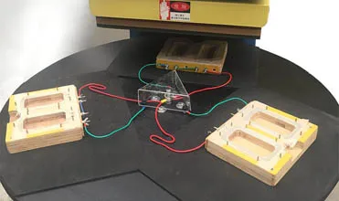 Round wooden table, diameter is 960mm, can be mounted 3 moulds/dies at one time.