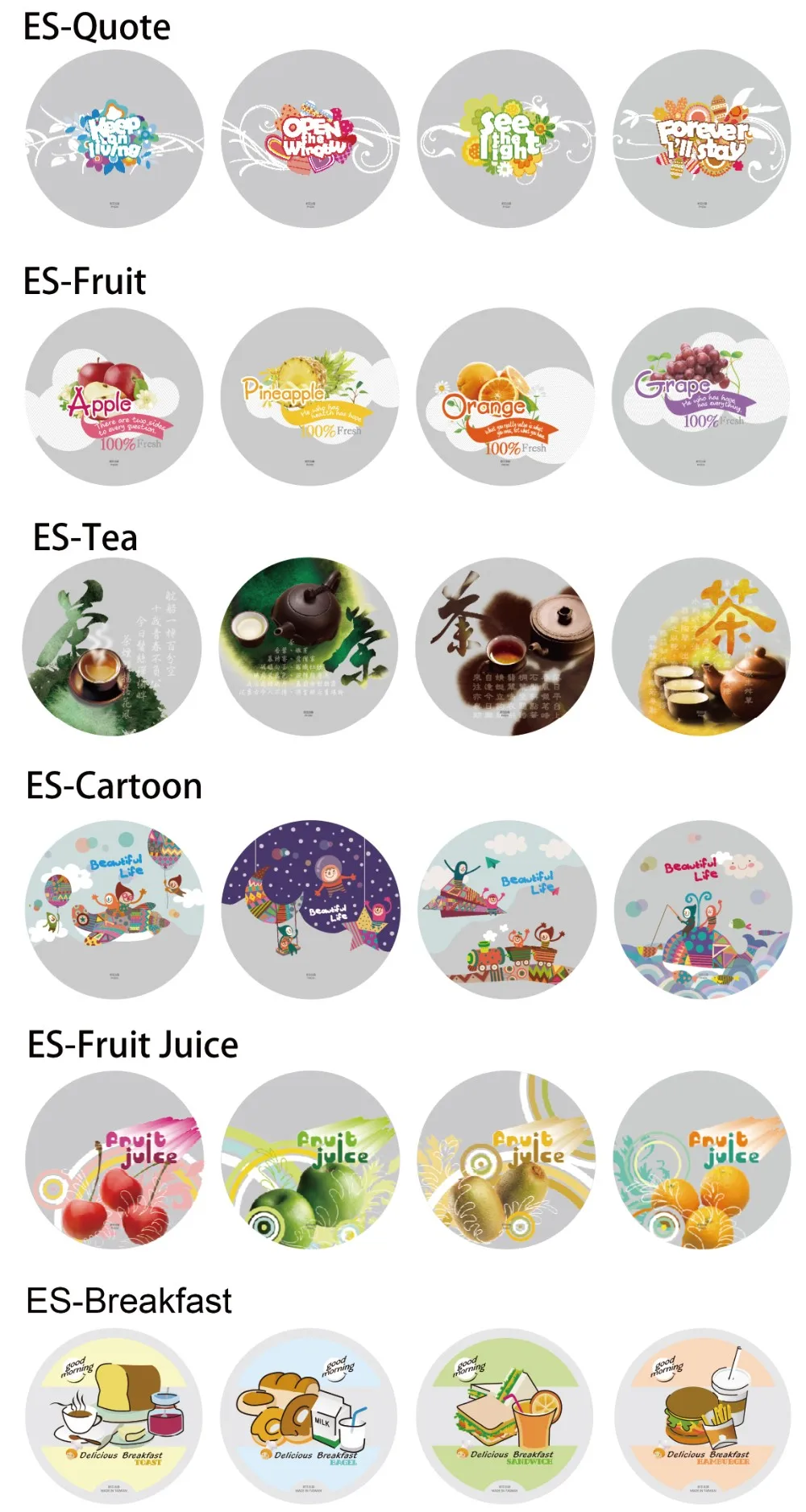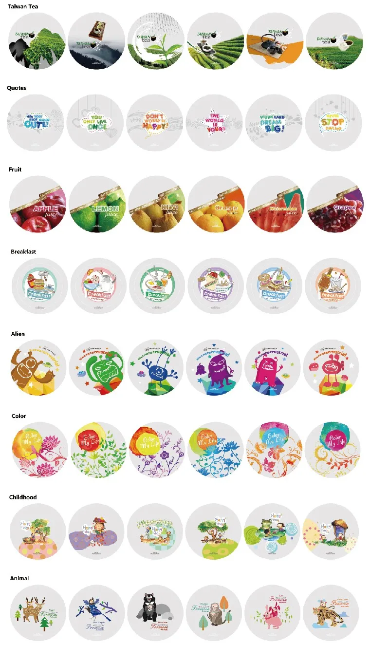 ES films | It can seal PP, PS plastic cups and PE paper cups | Yes | 4 or 6 | 290 | 2500 | Transparent or Phoenixes standard designs | |