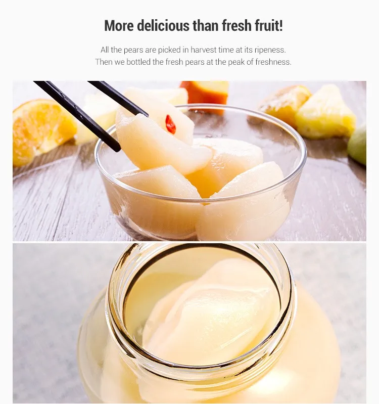 Zhenxin only use the fresh pears from hometown of pears. Pears grown in these regions are crisp, sweet & juicy, nutritious and refreshing.