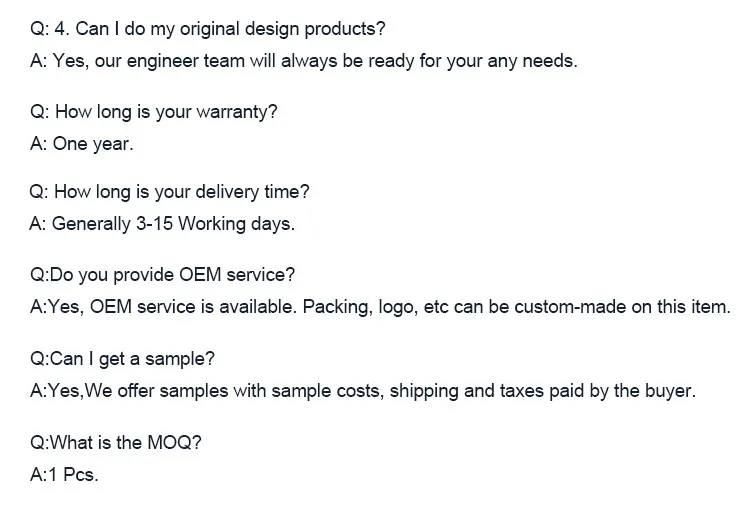 Sample order in stock , 3-5 working days will be shipped out, and 15-20 days for bulk production