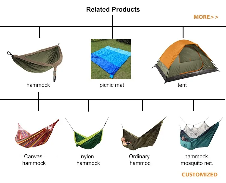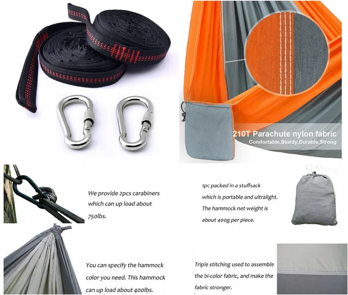 | Package Contents | 1 hammock bed+ 2 catabiners+2 straps+1Hammock Pouch+1Logo |