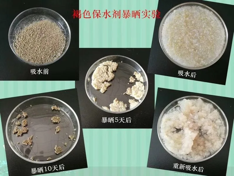 Solid water resin is composed of low molecular substances by polymerization of synthetic polymer. Because of the molecular structure crosslinking, the water absorption of molecular networks can not be squeezed out by general physical methods, so it has a strong water retention property. It can rapidly absorb deionized water hundreds of times heavier than the salt water containing dozens of times to nearly a hundred times, and has the function of repeated water absorption, water after the expansion of hydrogel, then slowly release water for seed germination and crop growth and utilization, so as to enhance the performance of soil moisture, improve soil structure, reduce water leakage in deep and soil nutrient loss, increase water use efficiency. Water retention resins are suitable for use in areas where precipitation is scarce, rainfall is uneven in the annual season, and in areas lacking irrigation water.
