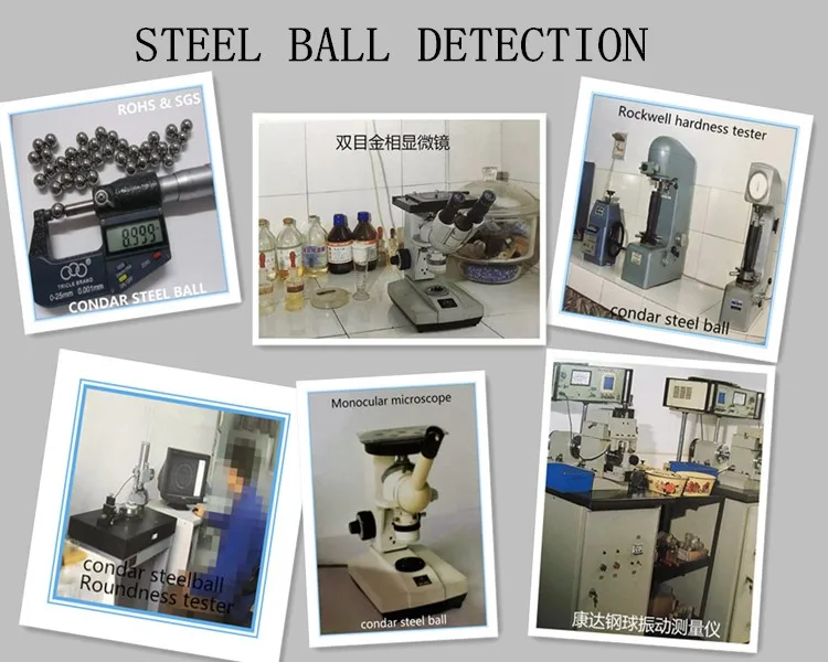 Condar steel ball factory has introduced many advanced steel production and testing equipment, which greatly improve the production efficiency and product quality, to provide more high quality steel for the new and old customers, the main specifications are 0.3MM--200.0MM, the main models of stainless steel ball bearing, steel ball, chrome steel ball, steel ball drilling, plating ball, micro ball large ball, and so on.