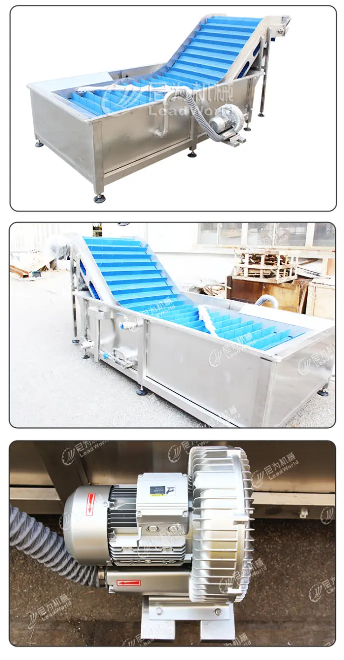 The machine adopt air bubble washing.Applies to vegetables, fruits, aquatic products and other granular, leafy, root cleaning products, immersion.We can customized machine according your requirement.