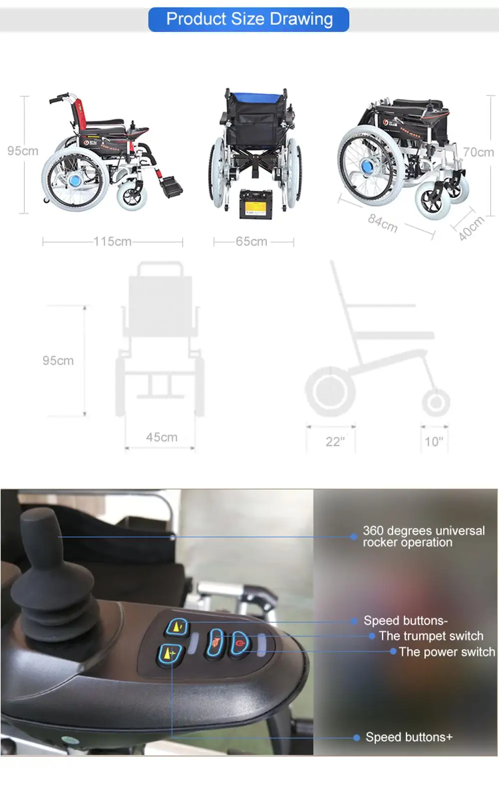 5) full intelligent controller, 360 degree rotation, 5 speed adjustable.