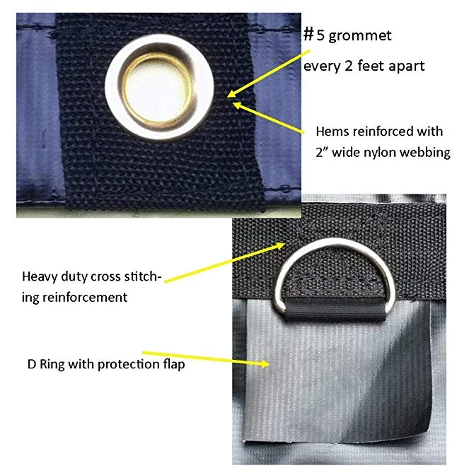 4.Reinforcing: All hemmed edges reinforced with 2" webbing, double lock-stitched with UV-treated polyester thread