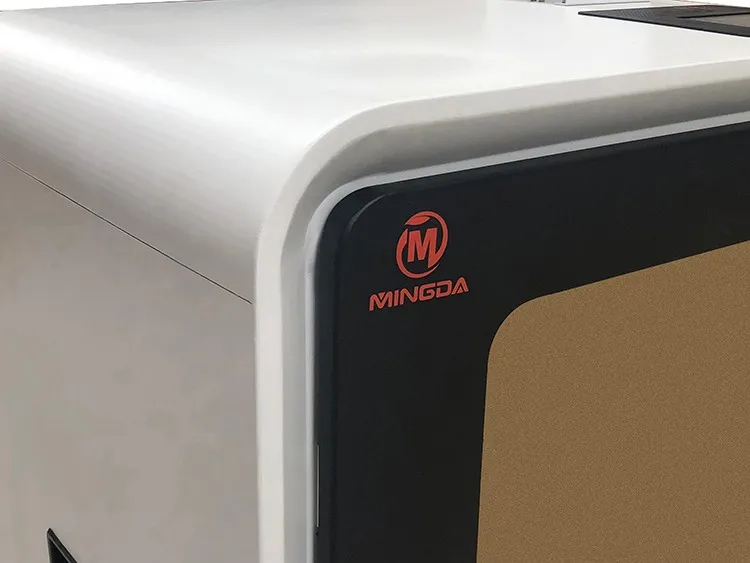The fully enclosed chamber can block all external interference. Also this frame can reduce noises, at the same time to provide constant temperature, so that the model won't deform. Mingda 3D Printer Round corner design, compared to straight triangles, this design more safer to prevent scratched both children and adult.