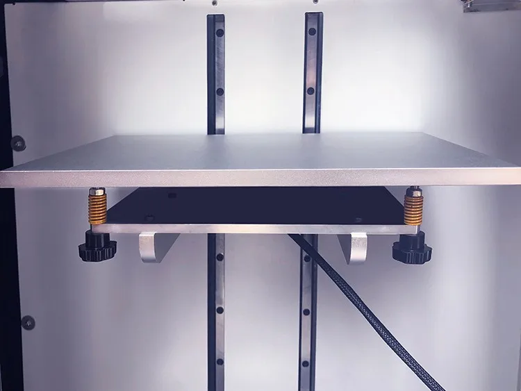 The platform surface is attached with the 3D printing special stickers, and the printer has vertical thermal conductivity so that can support high thermal efficiency. You can set the parameters to turn off the hot bed automatically after the specified number of layers.