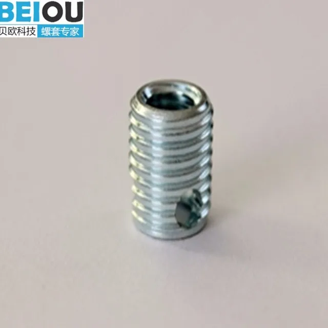Timeserts is self locking. On installation the bottem internal threads of the insert are cold rolled to expand the mating external threads into the base material locking the insert in place. Locking mechanism is at the bottom of insets.