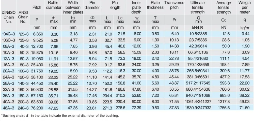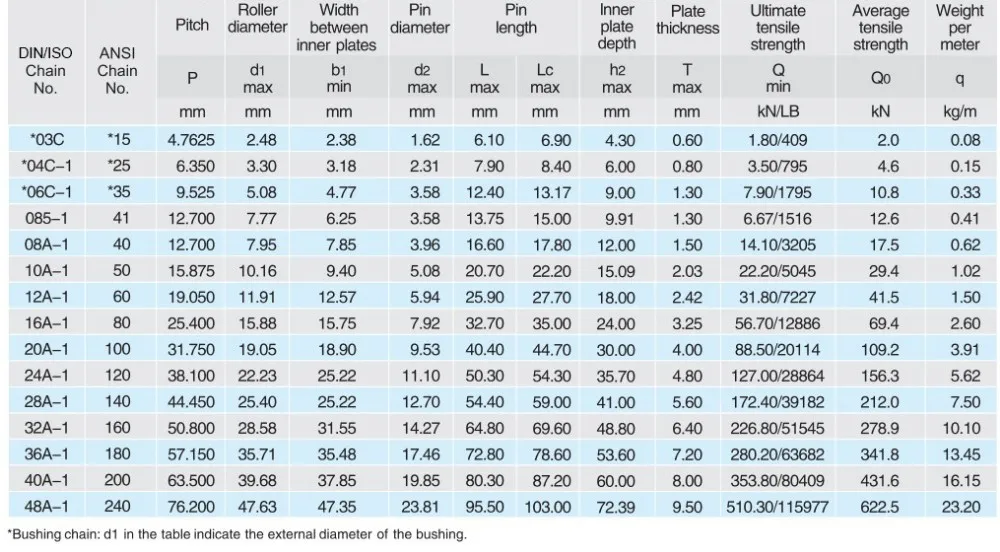 ANSI/BS standard roller chains meet the ISO606, BS228 and ANSI standard.