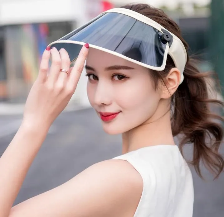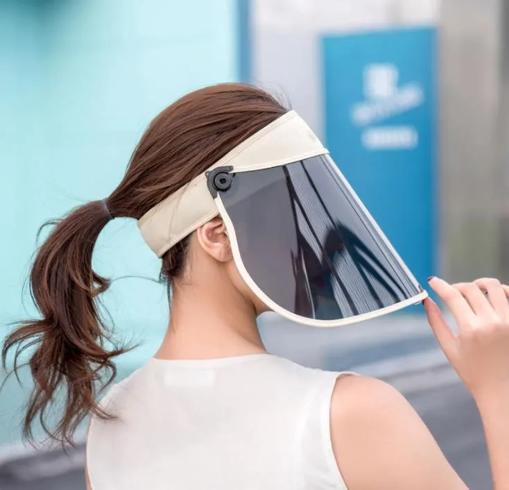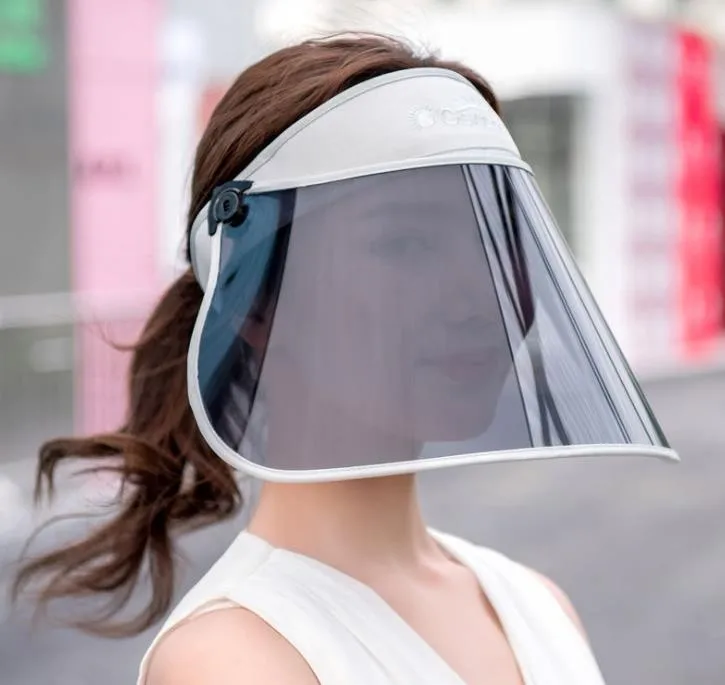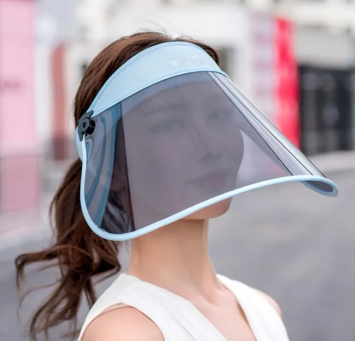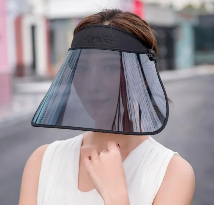 wholesale small order stock Summer outdoor riding longer windproof caps transparent plastic UV sun protection visor hat | ||
